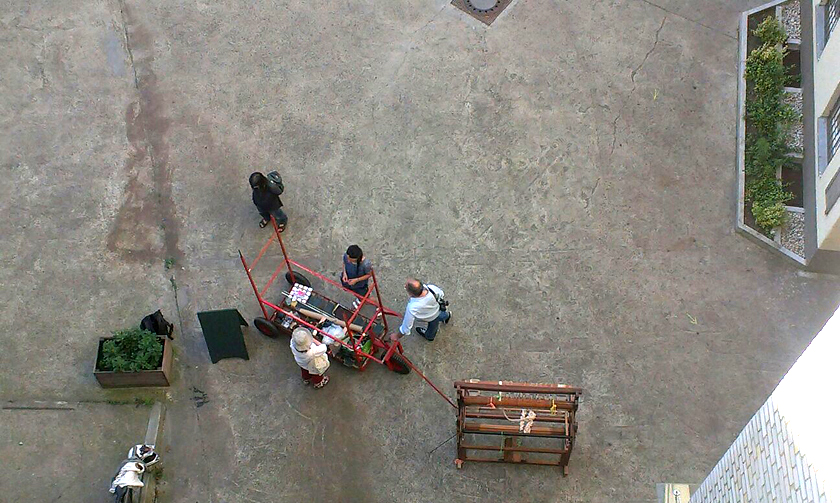 Zur Projektprämiere treffen sich der historische Webstuhl der norddeutschen Firma Marquardsen und der Handwagen POOR ROCKERSTRAIN zum ersten Mal. Der POOR ROCKERSTRAIN ist ein ausrangierter Vergnügungswagen, der zuletzt für eine mobiles Soundsystem genutzt wurde. Es bedarf noch einiger Umbauten bis die beiden bereit sind für kleine und große Abenteuer im Großtadtdschungel Neukölln.